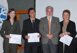 El marco para el Premio fue una solemne ceremonia que reunió a autoridades, académicos, homenajeados, familiares y amigos. Este año, los homenajeados de la Facultad de Ciencias Agropecuarias y Forestales fueron: Jacqueline Rilling Heiz (Biotecnología), Luis Orellana Riquelme (Ingeniería en Recursos Naturales) y Josefina Chahín Doussoulin (Agronomía), quienes recibieron de manos del Decano Aliro Contreras Novoa sus respectivos diplomadas y el incentivo monetario que contempla el Premio.